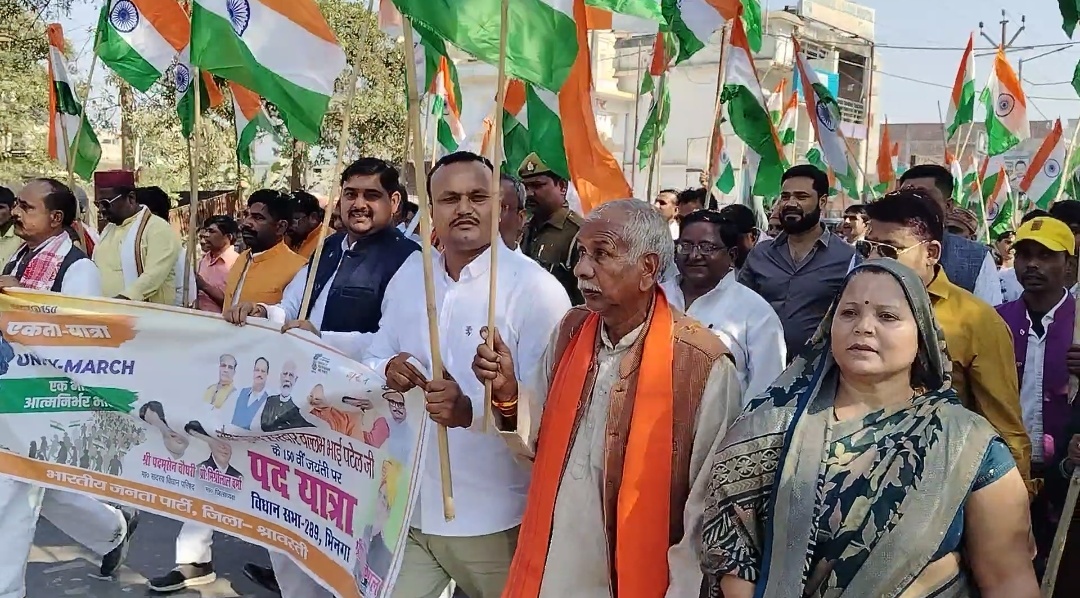 श्रावस्ती। सरदार वल्लभभाई पटेल की जयंती को लेकर पूरे देशभर में आयोजित कार्यक्रमों की श्रृंखला के तहत श्रावस्ती जिले में भी सोमवार को भारतीय जनता पार्टी द्वारा भव्य एकता पद यात्रा निकाली गई। भिनगा स्थित पटेल तिराहे से शुरू हुई इस यात्रा में पूर्व डीजीपी और राज्यसभा सांसद बृजलाल मुख्य अतिथि के रूप में शामिल हुए। हजारों की संख्या में पहुंचे लोगों ने हाथों में तिरंगा थामकर भारत की एकता और अखंडता का संदेश देते हुए करीब 5 किलोमीटर पैदल मार्च किया।