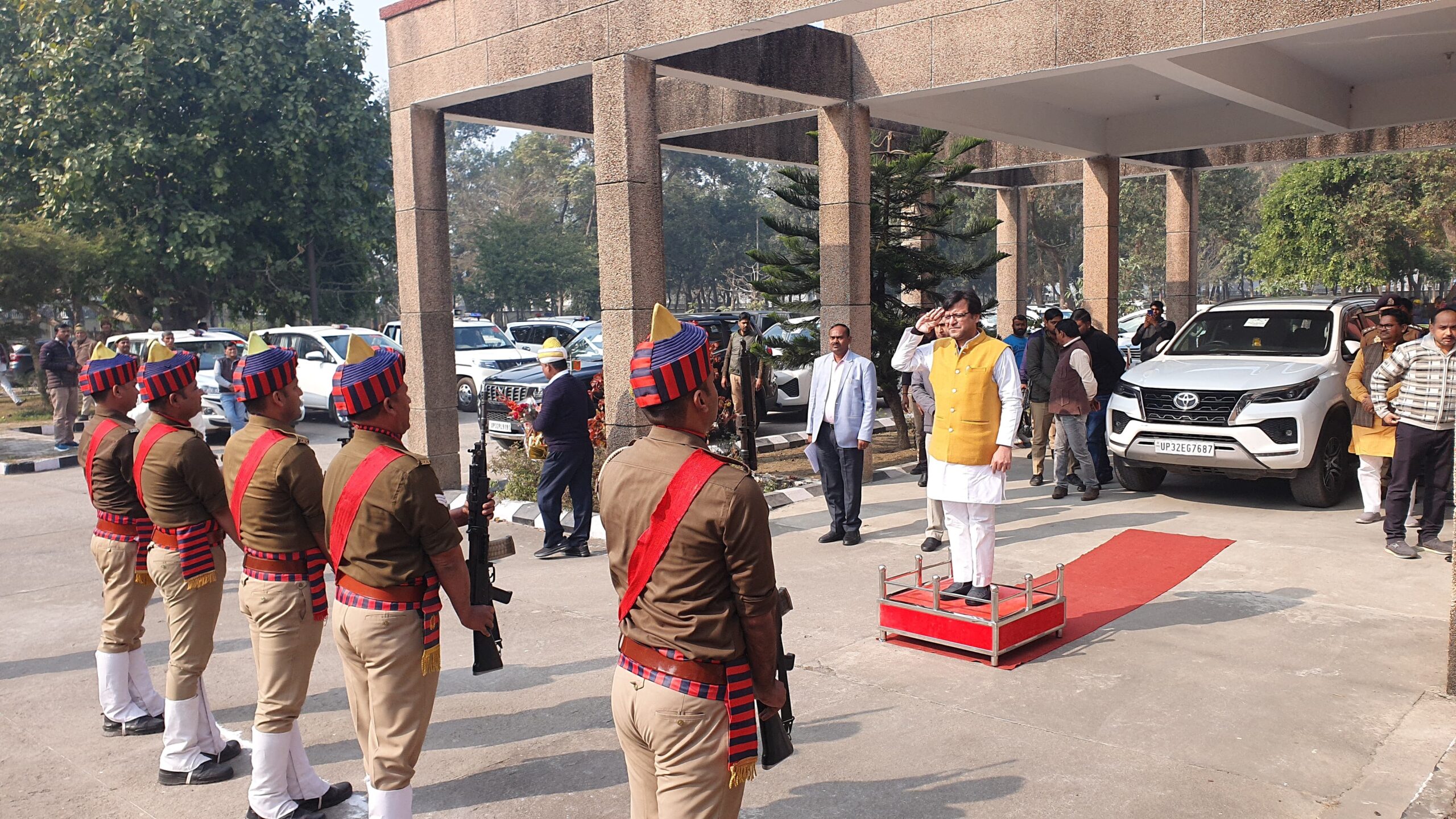 श्रावस्ती। जिले के प्रभारी मंत्री एवं राज्यमंत्री नितिन अग्रवाल बुधवार को श्रावस्ती पहुंचे। जिले में आगमन पर प्रशासनिक अधिकारियों ने उनका भव्य स्वागत किया। डीएम और एसपी ने उन्हें बुके भेंट कर सम्मानित किया, वहीं राज्यमंत्री को गार्ड ऑफ ऑनर भी दिया गया।